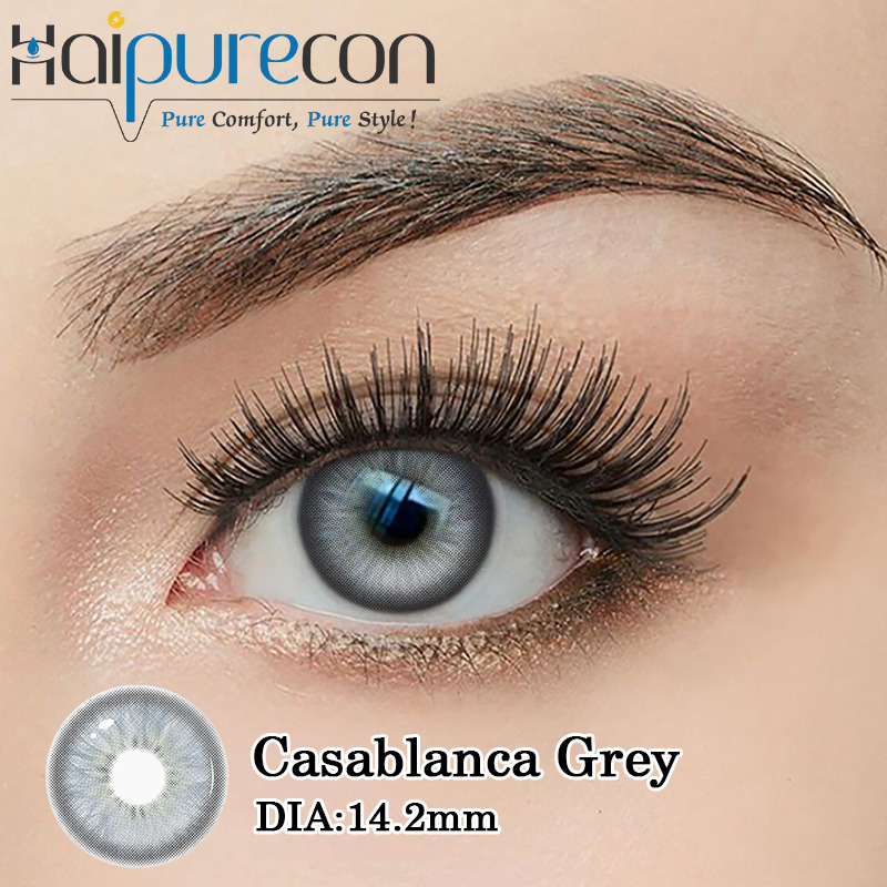 It's not a flat, monochromatic gray but rather has a multi-faceted appearance, with hints of silver and charcoal that create a luminous effect. This gives the lenses a natural yet mysterious quality, as if there's a gentle mist over the eyes.