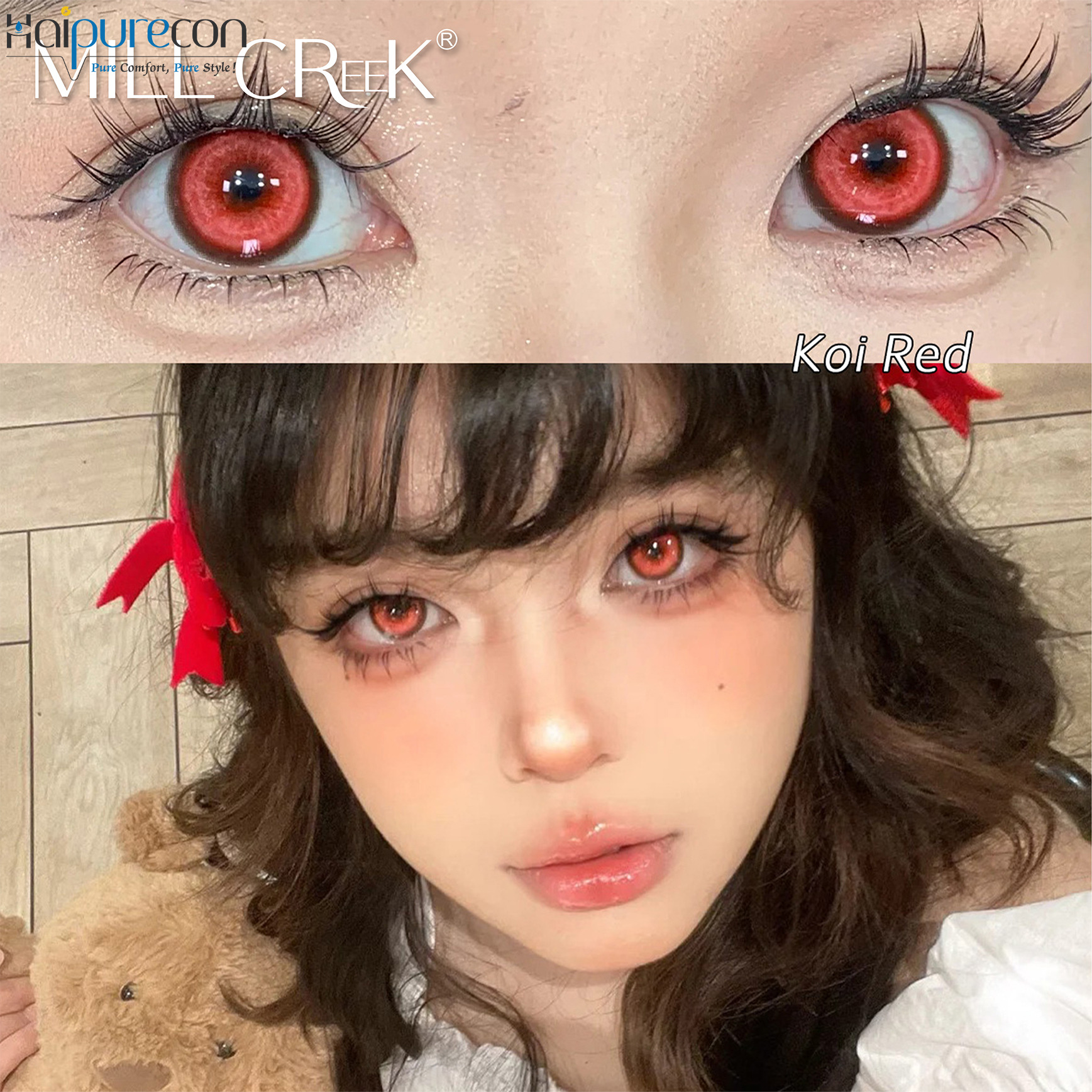 Koi Red showcases a vivid red color inspired by koi patterns, creating a strong, eye-catching effect that stands out instantly. The design enhances eye definition with a bold, artistic look, making it ideal for cosplay, stage performance, photography, and fashion-forward styling.